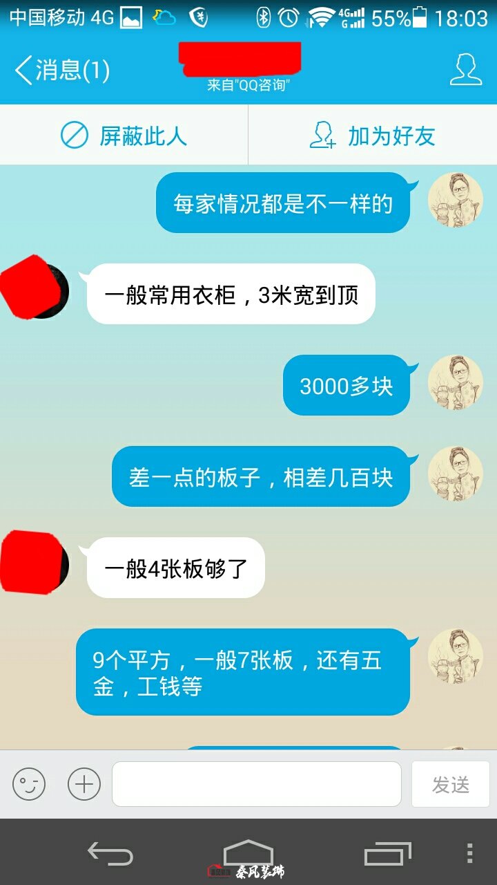 我說:我們是用七張板做的,(3000多是用千年舟或莫干山E1級的板子[差板子相差幾百塊錢],用七張板做,衣柜內(nèi)在結(jié)構(gòu)相對合理復(fù)雜。四張板也可以做,就是有其外形,而內(nèi)在結(jié)構(gòu)簡單,再加上工錢和衣柜五金、柜門,差不多就是3000來塊錢)。